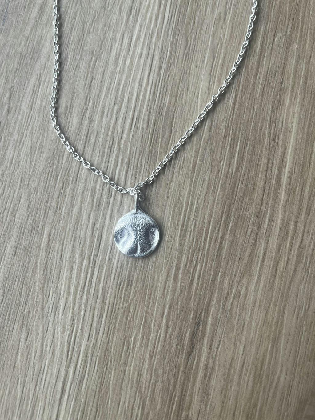 Ein feines und sehr schön verarbeitetes Schmuckstück. Es hat mich überrascht, wie gut der Nasenabdruck zu erkennen ist.